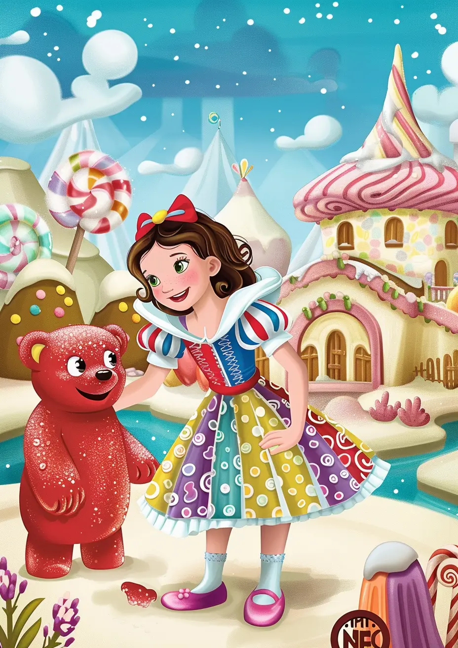 Snow White is a sweet girl in the floating Candy Kingdom who doesn't feel self-confident. With her friend Gummy Bear, she faces the Queen's anger and hides in a candy cottage. They meet seven funny dwarfs and have exciting adventures. Can Snow White find the confidence to be herself?