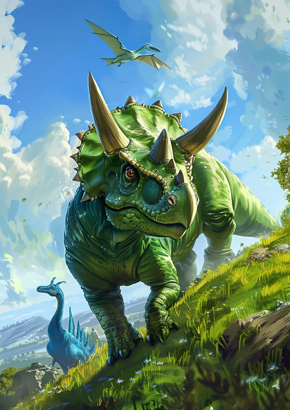 Triton, a young Triceratops, wants to overcome his fear of heights in Dino Valley. With his friend Vinny, they embark on a quest for the Sunstone to save their valley's joy. Will Triton climb the tallest cliff and face his fears for the Sunstone's magic? Join their adventure to find out!